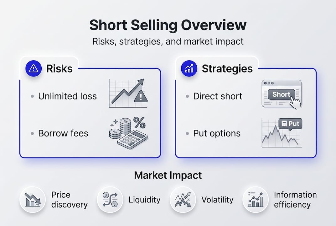 | Short selling basics | You sell borrowed shares hoping to buy them back cheaper and profit when prices drop. |